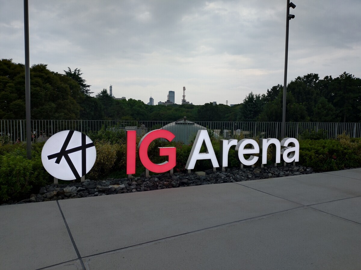 一週間前に購入したoasisのトラックジャケット着て、さっそうと東京ドームへ。